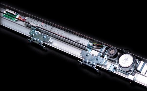 Penataan Motor, Controller, Pulley sangat rapat dan stabil pada aluminum rail yang tebal dan kokoh. Pada kondisi ini memungkinkan mesin autodoor akan beroperasi dengan stabil dan tahan lama